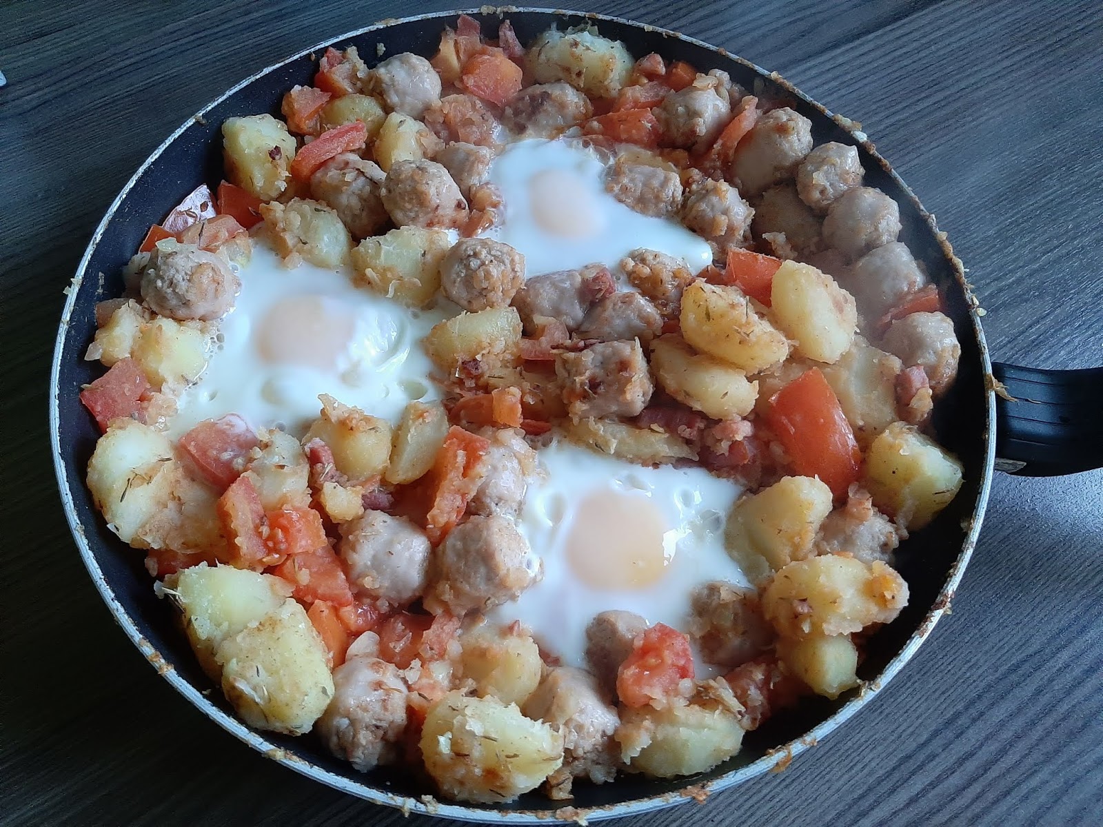 - 10:00. Een eenpansgerecht , en die hebben eigenlijk alleen maar voordelen: minder afwas, meestal sneller klaar en eten uit één pot is toch zo gezellig. Vandaar gebakken aardappelen . © Canva. Wat heb je nodig: (4 personen).