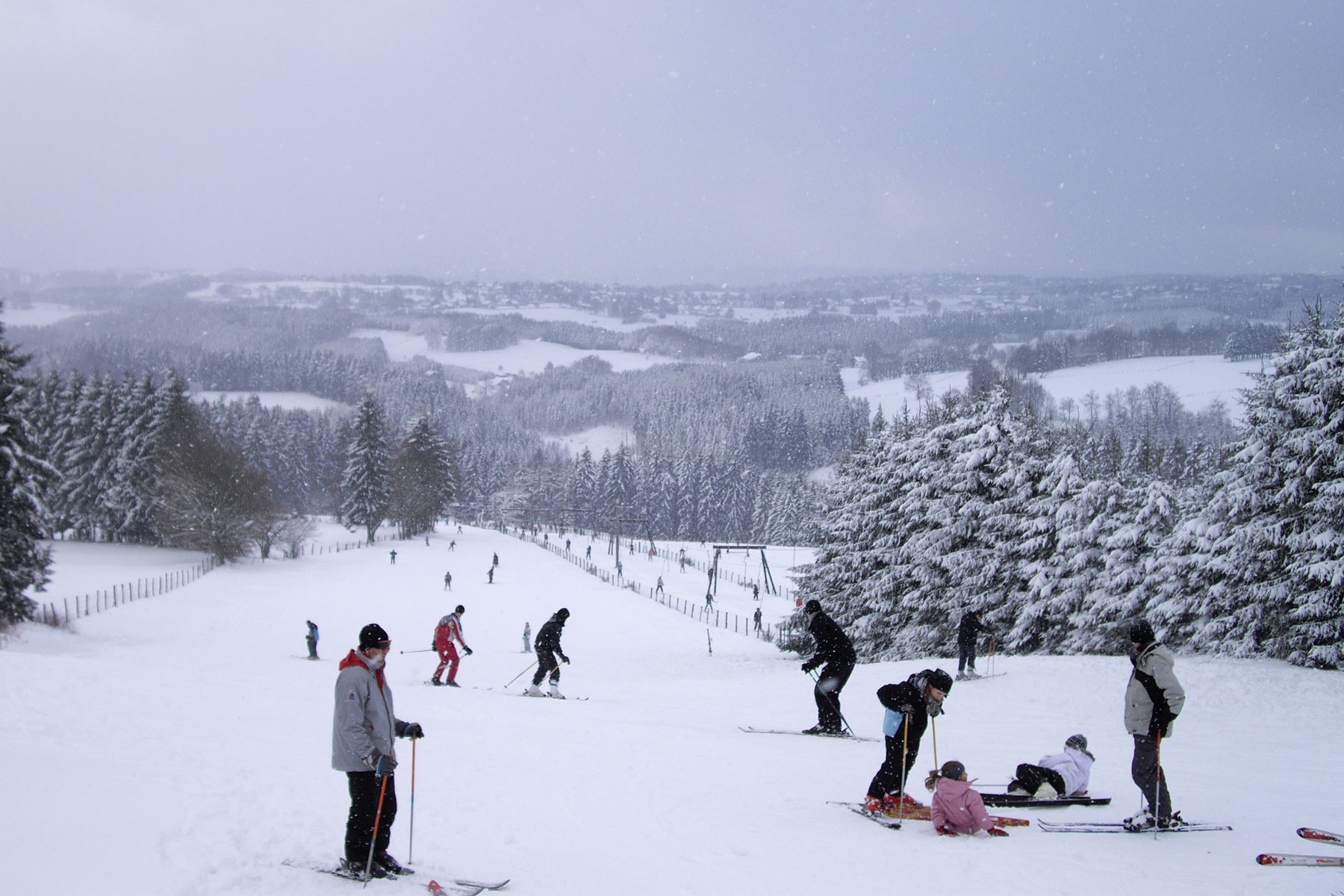 Ski Club Weywertz à Butgenbach. 5 pistes de ski de fond : 2, 4, 6, 8 et 13 kms ainsi qu'une piste de luge.Et en province de Luxembourg, à la Baraque de Fraiture , la piste de ski alpin est accessible ainsi que le ski de fond.