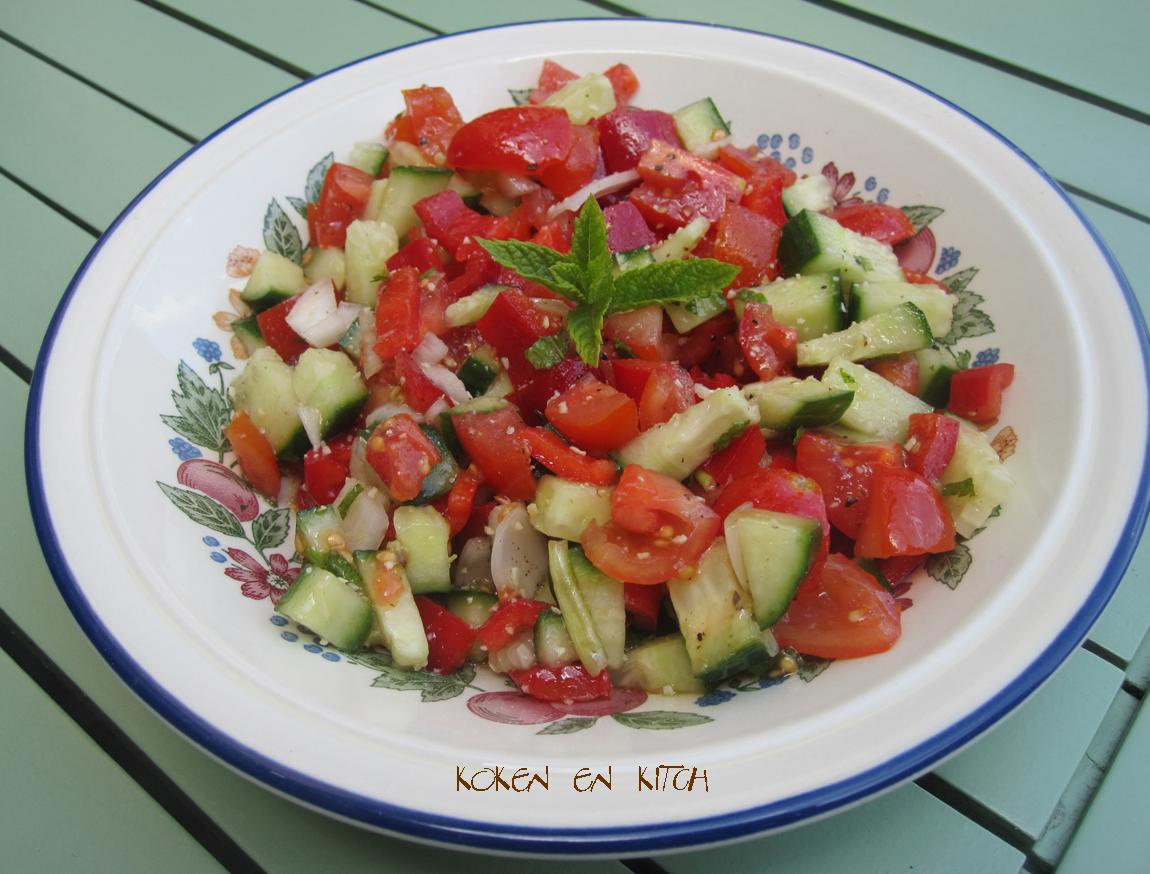 Deze lekkere en frisse komkommer - tomaat salade kun je bij heel veel verschillende gerechten serveren. Deze salade is altijd goed!